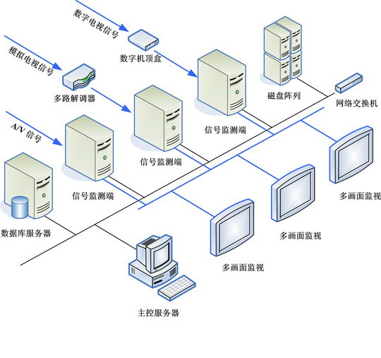 电视信号监控系统是一套对电视信号播出的内容和传输质量进行实时监测、管理的系统,是基于局域网的视音频监控系统。